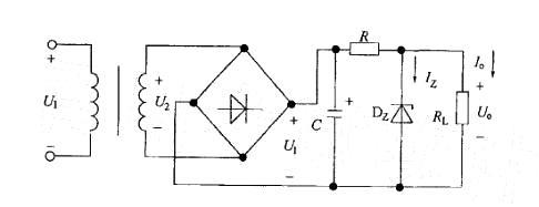 整流滤波电路如图所示,已知U1=30V,U0=12V,R=2kΩ,RL=4kΩ,稳压管的稳定电流IZmin=5mA 与IZmax=18mA。通过稳压管的电...