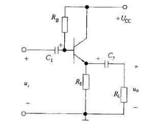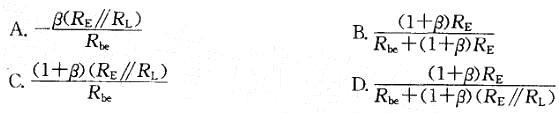 共集电极放大电路如图所示,三极管的输入电阻和电流放大倍数为已知数,该放大器的电压放大倍数表达式为: