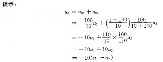 问题 运算放大器应用电路如图所示,在运算放大器线性工作区,输出电压与输入电压之间的运算的关系是: A.u0=10(u1-u2) B.u0=10(u2-u1) C.u0=-10u1+11u2 D.u0=10u1-11u2