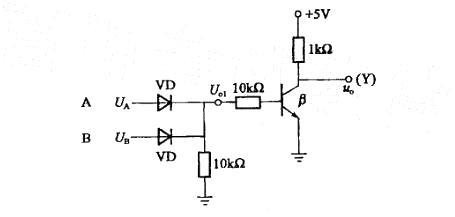 图示电路中,二极管视为理想元件,即正向电压降为零,反向电阻为无穷大。三极管的β=100。输入信号UA、UB的高电平是3. 5V,(逻辑1),低电平是0. ...