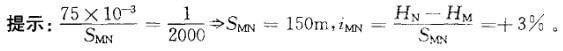 在1/2000地形图上量得M、N两点距离为dMN= 75mm,高程为HM= 137. 485m、 HN= 141. 985m,则该两点间的坡度iMN为: ...