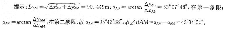 问题 两红线桩 A、B 的坐标分别为xA = 1000. 000m、yA=2000. 000m、xB= 1060. 000m、yB= 2080. 000m;欲测设建筑物上的一点M,xM = 991. 000m、yM = 2090. 000m。 则在A点以B点为后视点,用极坐标法测设M点的极距DAM和极角∠BAM分别为: A. 90. 449m、42°34'50'' B. 90. 449m、137°25'10'' C. 90. 000m、174°17'20" D. 90. 000m、95°42'38"