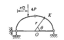 问题 图示半圆弧三铰拱,半径为r,θ=60°。K截面的弯矩为: