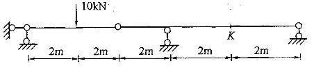 图示梁截面K的弯矩MK(以下侧受拉为正)等于: A. -10kN ? m B. -5kN ? m C. 0 D. 5kN