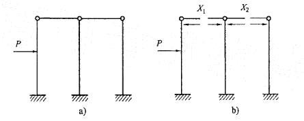 问题 图b)是图a)结构的力法基本体系,则力法方程中的系数和自由项为: A.Δ1P>0, δ121P121P>0, δ12>0 D. Δ1P12>0