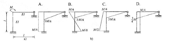 问题 在下面图b)的四个图中,表示图a)结构正确弯矩图的是: