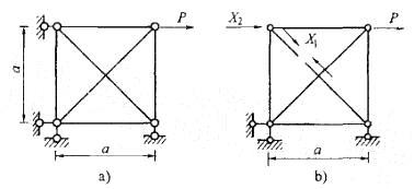 问题 图a)所示桁架,EA=常数,取图b)为力法基本体系,则力法方程系数间的关系为: A.δ11=δ22,δ12>0 C.δ11≠δ22,δ12>0B.δ11≠δ22,δ1211=δ22,δ12