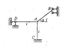 问题 图示结构各杆线刚度i相同,角a≠0,用力矩分配法计算时,力矩分配系数μBA应为: