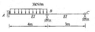 问题 图示连续梁,弯矩MBA的数值等于: A. 0.5kN ? m B. 1kN ? m C. 1.5kN ? m D. 2kN ? m