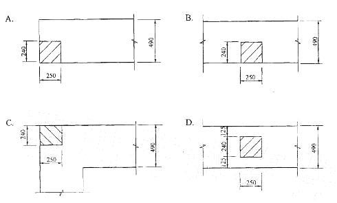 问题 如图所示,截面尺寸为240mmX250mm的钢筋混凝土柱,支承在490mm厚的砖墙上,墙采用MU10砲块、M2.5混合砂浆砌筑,可能最先发生局部受压破坏的是哪个图所示的砖墙?