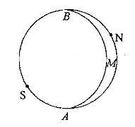 在赤平极射投影图上的AMB结构面(见图),其倾向是(图中E、W、S、N相应为东、西、南、北): A. SW B. NE C.SE D. NW