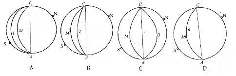 问题 如图所示,为四种结构面与边坡关系的赤平极射投影图,试分析其中()属于不稳定边坡。 (AMC为边坡的投影,1、2、3、4为结构面投影) A. A1C B. A2C C. A3C D. A4C