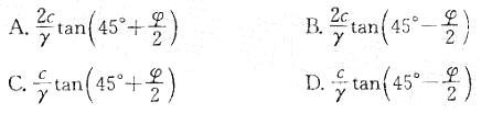 单一平面滑动破坏的岩坡,滑动体后部可能出现的张裂缝的深度为(岩石重度γ, 滑面粘聚力c,内摩擦角的φ):