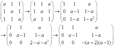 解析 齐次线性方程组的系数矩阵作初等变换如下 要使齐次线性方程组有非零解,则矩阵的秩r<3,因此得a-1=0或-(a+2)(a-1)=0,计算得a=1或a=-2。 【说明】n元齐次线性方程组Ax=0有非零解的充要条件是r(A)<n。
