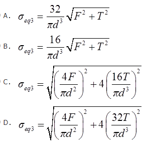 问题 图示直径为d的圆轴,承受轴向拉力F和扭矩T。按第三强度理论,截面危险的相当应力σeq3为(  )。