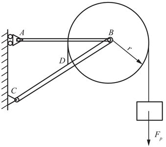 在图示结构中,己知AB=AC=2r,物重Fp,其余自重不计,则支座A的约束力为(  )。 A. FA=0 B. FA=(1/2)Fp(←) ...