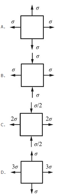 问题 在图示4种应力状态中,最大切应力τmax数值最大的应力状态是(  )。