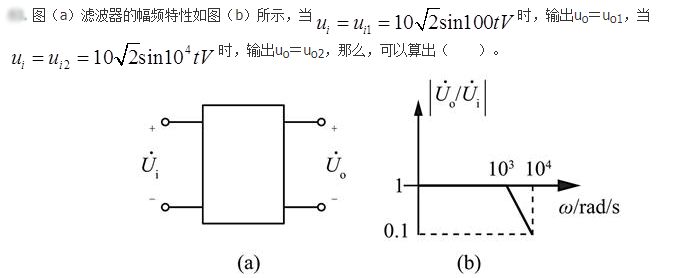 解析 由波特图可知,ω=100rad/s时,输出不发生衰减,ω=10^4rad/s,输出衰减为输入的0.1倍,所以uo1=10V,uo2=1V。
