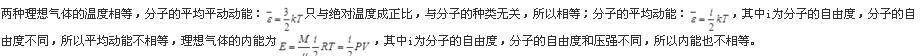 选项 A.两种气体分子的平均平动动能相等 B.两种气体分子的平均动能相等 C.两种气体分子的平均速率相等 D.两种气体分子的内能相等