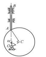 图示凸轮机构,凸轮以等角速度ω绕通过O点且垂直于图示平面的轴转动,从而推动杆AB运动。已知偏心圆弧凸轮的偏心距OC=e,凸轮的半径为r,动系固结在凸轮上,...