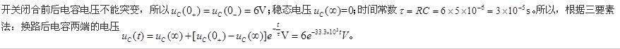 问题 电路如图所示,当开关S闭合后,电容两端的电压uC为(  )。