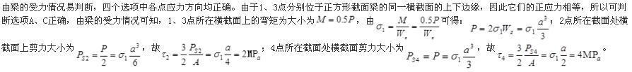 问题 从外伸梁上取出四个应力单元体,如图所示,其中错误的是(  )。