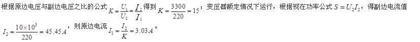 问题 容量为10kVA的单相照明变压器,电压为3300/220V,副边全部接上60W、220V的白炽灯,若使变压器在额定情况下运行,原边电流值最接近于(  )A。