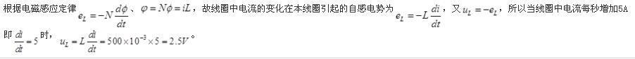 问题 电感L=500mH的线圈.其电阻忽略,设在某一瞬时,其中的电流每秒增加5A,此时线圈两端的电压是(  )。