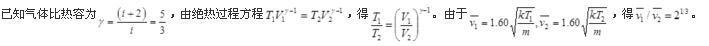 问题 气缸中有一定量的氦气(视为理想气体),经过绝热压缩,体积变为原来的一半,气体分子的平均速率变为原来的(  )。