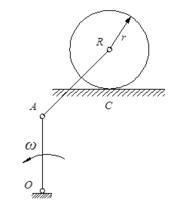 问题 如图所示,曲柄OA长R,以匀角速度ω绕O轴转动,均质圆轮B在水平面上做纯滚动,其质量为m,半径为r。在图示瞬时,OA杆铅直。圆轮B对接触点C的动量矩为(  )mRrω。
