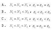 结构受力如图所示,各杆EA相同,若以N1、N2、N3和 分别表示杆①、②、③的轴力和纵向线应变,则下列结论中正确的是(  )。