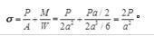 解析 未开槽时,杆件为轴向受压,其最大压应力为 开槽后,开槽段是偏心受压,将力向截面形心简化可得一等效力P和一等效力偶M=Pa/2;其最大压应力为