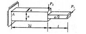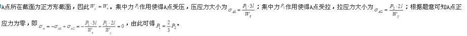 问题 如图所示,直杆承受P1和P2的作用,若使A点处正应力σA为零,则P1与P2的关系为(  )。