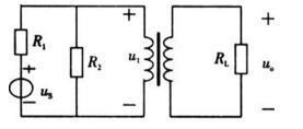 如图所示电路中,uo的有效值为100V,us的有效值为20V,R1=R2,由此可知(  )。 A.变压器变压比k=0.1 B.变压器变压比k=10 ...