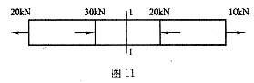 如图11所示轴向拉压杆,1-1截面的轴力N的数值为( )。A 20kN B -30kN C 10kN D -10kN
