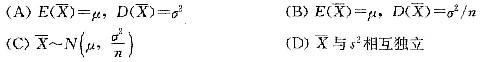 问题 设X1,X2,…,Xn是来自总体X的样本,,s2分别是样本均值和样本方差,E(X)=μ,D(X)=σ2,则有( )。