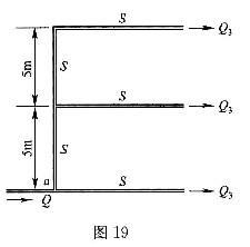 问题 三层供水管路,如图19所示。各管段的阻抗S皆为106s2/m5,层高均为5m。设a点的作用水头为20mH2O,那么流量Q1、Q2、Q3分别为( )。
