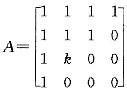 问题 向量组α1=(1,1,1,1)',α2=(1,1,1,0)',α3=(1,k,0,0),α4=(1,0,0,0)线性无关,则( )。