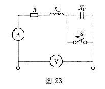 问题 如图23所示正弦交流电路中,开关S接通和断开时,电压表和电流表读数不改变,则可以断定( )。