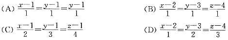 过点A(1,1,1)与B(2,3,4)的直线方程为( )。