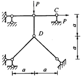 解析 竖向力引起对称的内力与变形,D点无水平位移,水平力仅使水平杆拉伸;或在C、D加一对反向水平单位力,用单位荷载法求解。