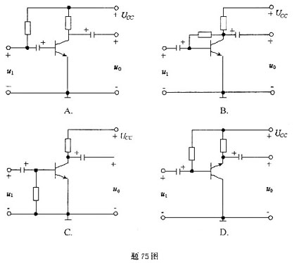 解析 分析交流放大器的结构图主要有两步:首先判断晶体管是否工作在放大区;然后检查交流电信号是否畅通地到达输出端。对于放大中频信号的交流放大器来讲,电容元件在直流通道中等效为断路,对中频交流信号电容可以视为短路