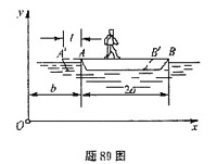 今有长为AB=2a、重为Q的船。船上有重为P的人。设人最初在船上A处,后来沿甲板向右行走,如不计水对船的阻力,求当人走到船上B处时,船向左移动的距离l为(...