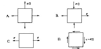 解析 利用公式,求得σ1,σ2,σ3,然后计算比较得B图剪应力最大为