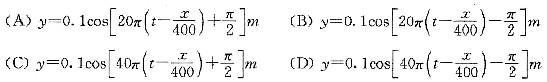 问题 已知一列平面简谐波沿Ox轴正向传播,波速u=400m·s-1,频率υ=20Hz,t=0时刻的波形曲线如图3所示,则波动表达式为( )。