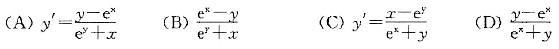 问题 方程xy-ex+ey=0确定的函数y=y(x)的导数为( )。