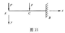如图15所示悬臂梁的变形能为U,则表示( )。A、A点的挠度 B、A、C两点挠度的和 C、C点的挠度 D、C点的转角