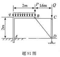 问题 图示结构,已知:q=10kN/m,P=20kN,Q=30kN。试求固定端A的约束反力为( )。
