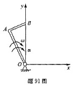 直角刚杆OAB可绕固定轴O在图示平面内转动,已知OA=40cm,AB=30cm,ω=2rad/s,α=1rad/s2,则图示瞬时,B点加速度在y方向的投影...