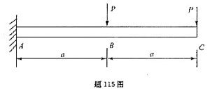 问题 如图所示一悬臂梁,其抗弯刚度为FI,受两个力P的作用,则利用卡式定理求自由端C的挠度为( )。